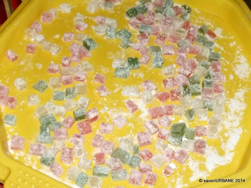 Acest chec festiv cu fructe confiate se poate coace si in forma circulara de guguluf – reteta aici.