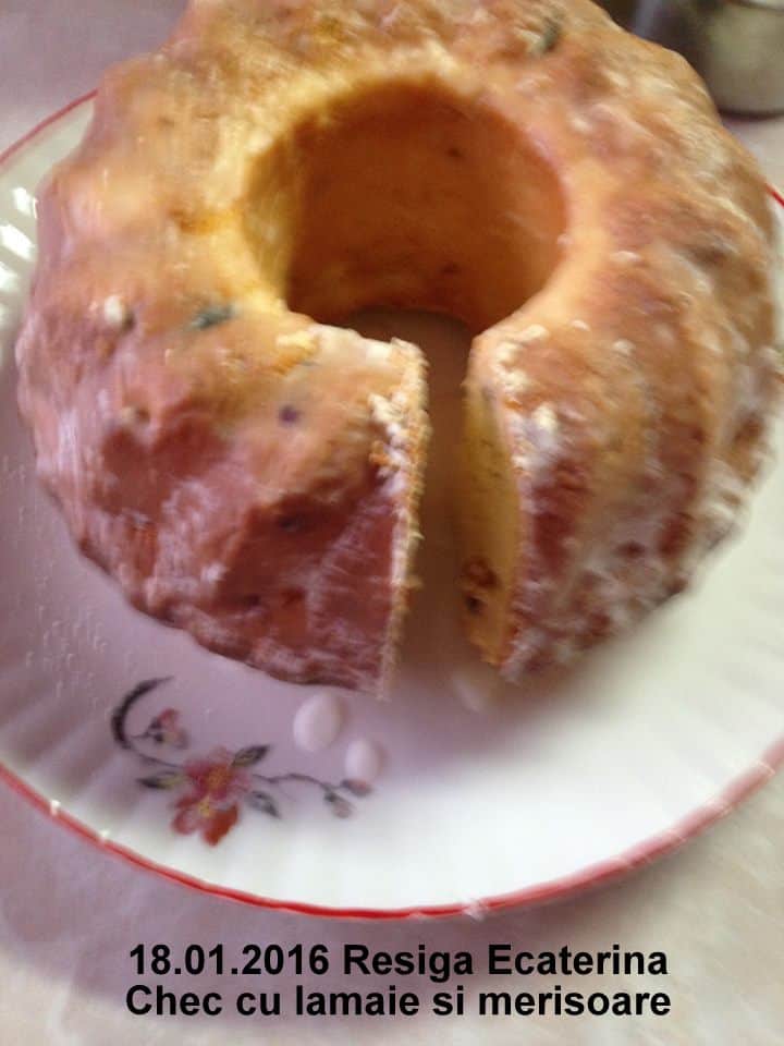 Acest chec cu lamaie si merisoare este dulce, acrisor, pufos, fraged si delicat.
