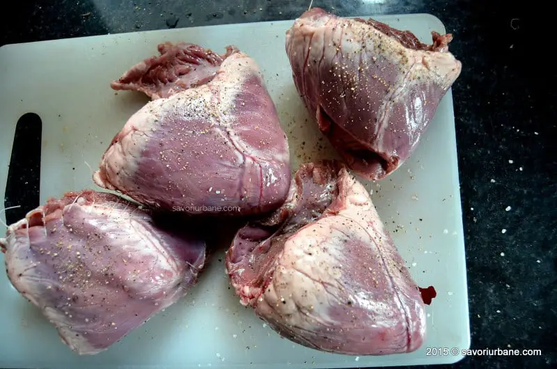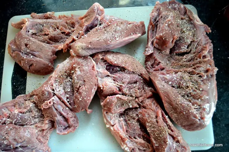 - 4 inimi de porc (cca. 1,2 kg)