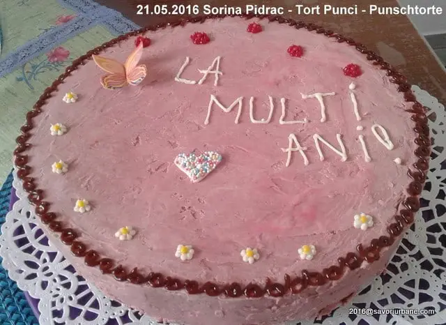 Tort Punci (punch, puns, puncs) – Punschtorte si prajiturile punci (Punschkrapfen) au origine vieneza si sunt raspandite si astazi in Ungaria, Cehia si Slovacia precum si in zonele Ardealului si Banatului de la noi. Mai tarziu reteta a aparut in cofetariile din intreaga Romanie. Mai stiti prajiturelele cubice acoperite cu glazura de fondant roz-violet aromata cu rom? Acelea sunt! Sub glazura delicata se ascund doua blaturi pandispan (unul alb si unul maro) si doua creme (una de cacao si unt si una din bucatele de blat insiropate cu suc de portocala si rom).