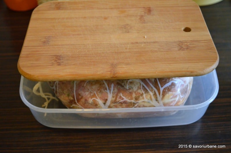 Cel mai bine e sa lasati macar 24 de ore sunca la presat in frigider. Deasupra se pune o greutate (un fund de lemn si niste conserve, de ex).