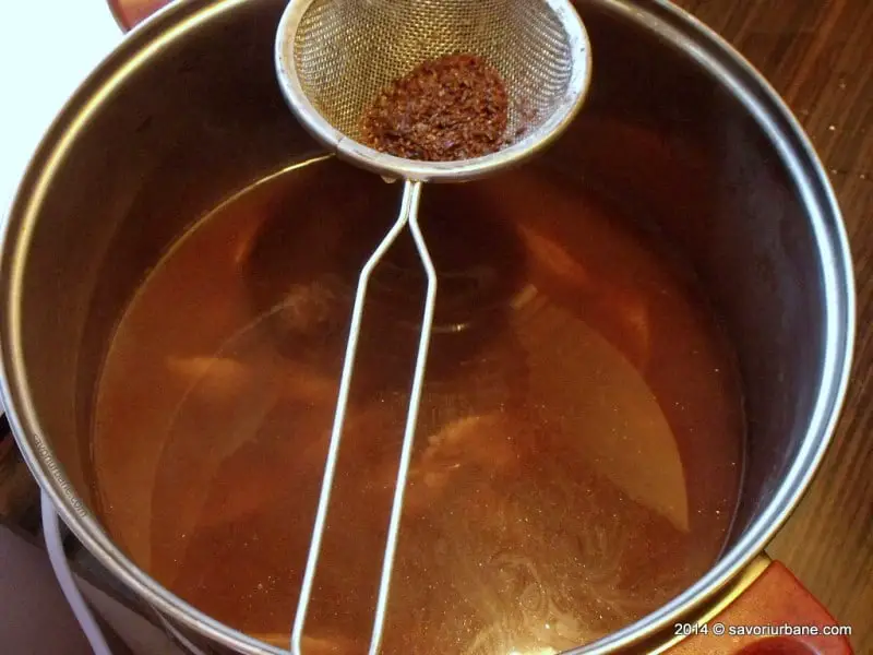 Se curata bine pipotele, se spala si se pun la fiert in slow cooker sau oala sub presiune impreuna cu condimentele si cu apa (care trebuie sa le acopere bine de tot). In slow cooker se fierb 8 ore pe functia medium si in oala sub presiune circa 45 minute. Daca se gatesc in oala clasica fierberea va dura cca. 3 ore la foc mediu spre mic, se va culege spuma formata la suprafata si se va mai completa cu apa din 30 in 30 de minute, pe masura ce aceasta scade. Eu le-am pus seara in slow cooker, am setata pozitia LOW si pipotele s-au gatit peste noapte. A doua zi am continuat cu pasii urmatori.